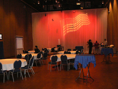 Juneau Democrats, gathering for last night’s election celebration at Centennial Hall. This shot was taken about 15 minutes before Obama’s acceptance speech:
