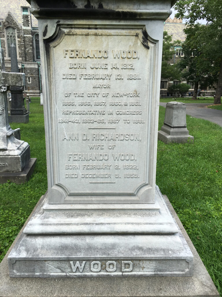 Fernando Wood is buried in Trinity Church Cemetery, Manhattan, New York. This is the uptown one, not the one near Wall Street where Hamilton is buried.