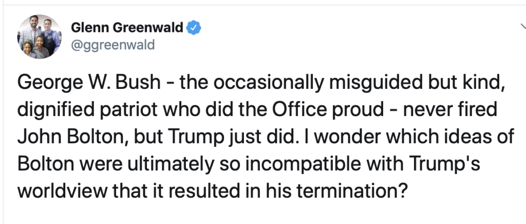It is hardly news that Glenn “MAGA” Greenwald has been well beyond parody since Trump was elected, but this is still amazing: