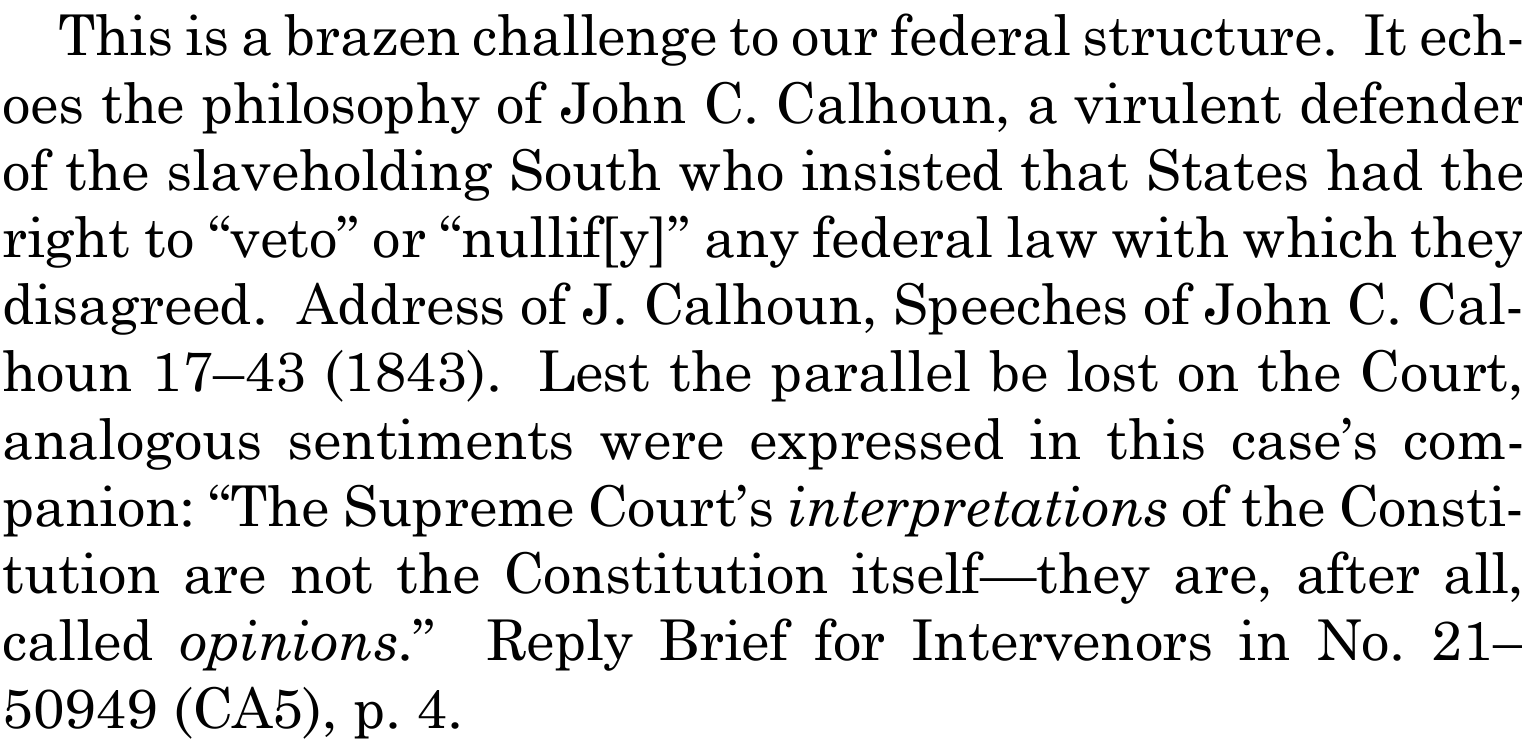 Justice Sotomayor’s opinion, meanwhile, correctly situates the Texas statute and the majority’s opinion allowing it to remain in effect, rewarding the state for nullifying federal law, within the American political tradition: