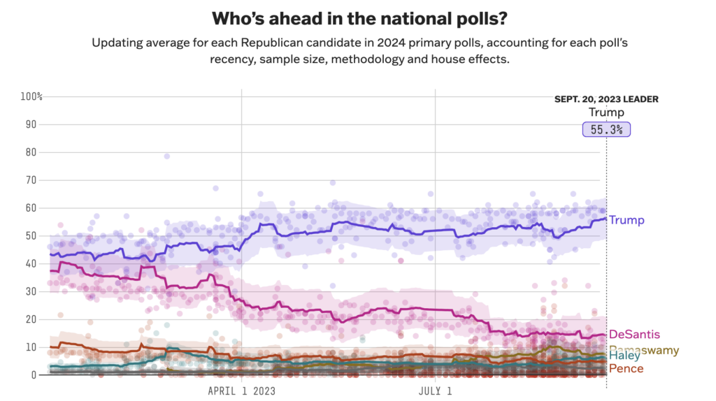 Not sure if the second line is a polling average or the downward slope of Mount Kilimanjaro. In fairness, he’s in a statistical tie with Chris Christie in New Hampshire!