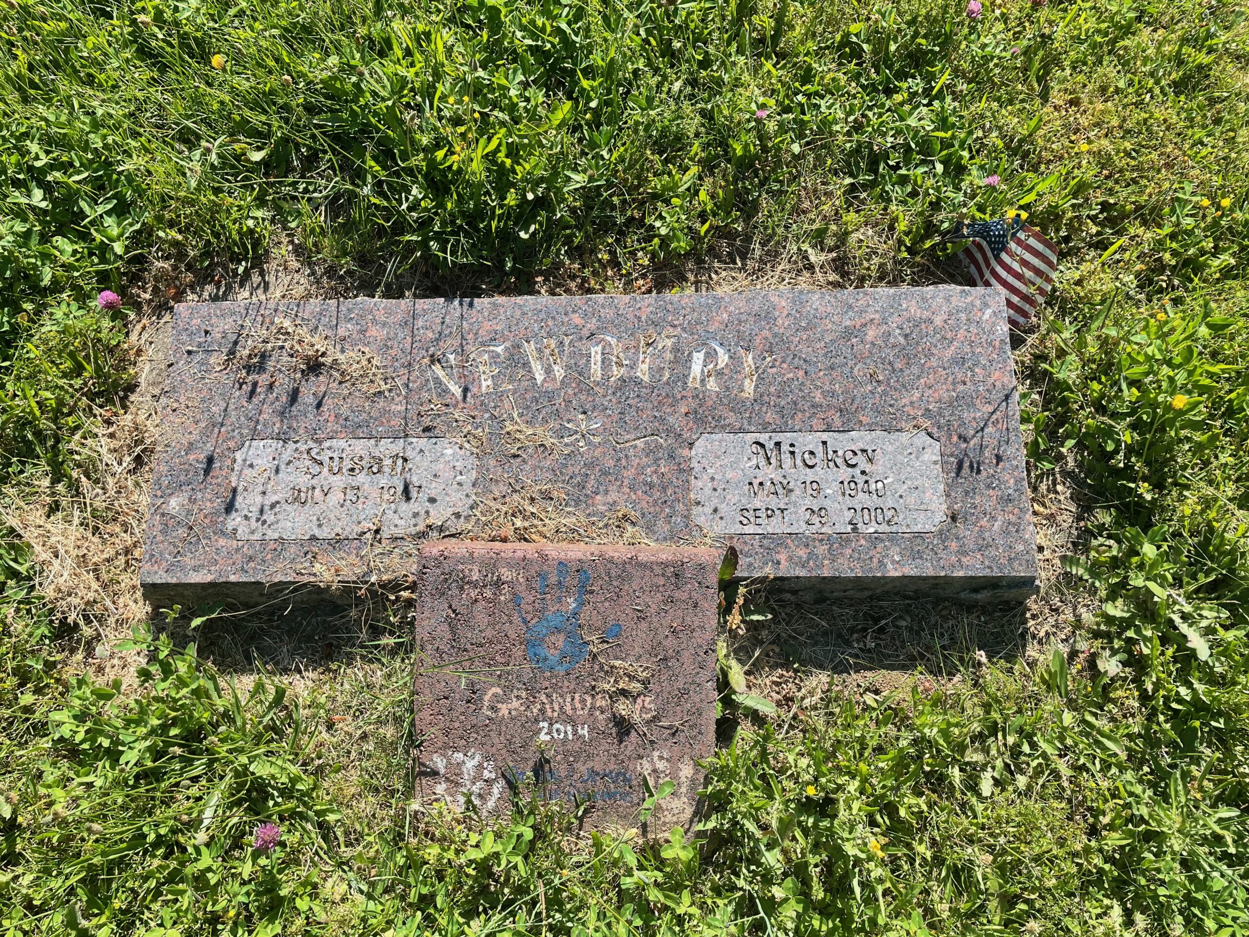 Mickey Newbury is buried in Greenwood Cemetery, Leaburg, Oregon.