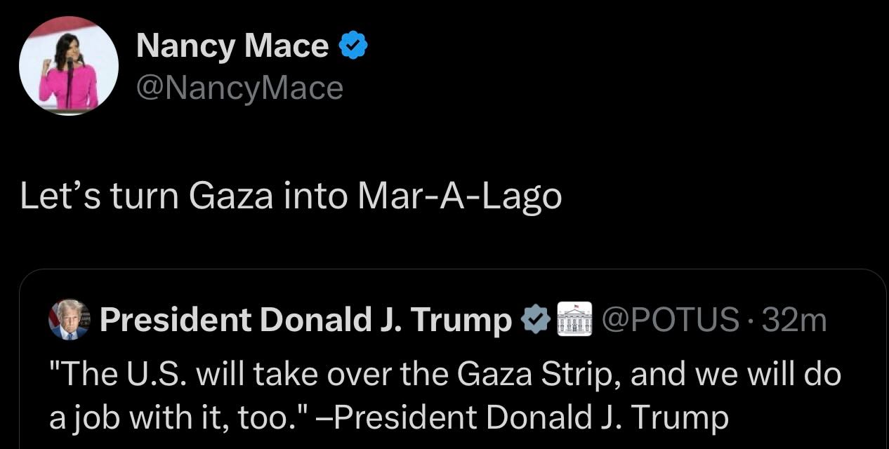 This guy has turned into a complete disaster. It should be unnecessary to point out that a US occupation of Gaza would make Fallujah look like a Scout jamboree.