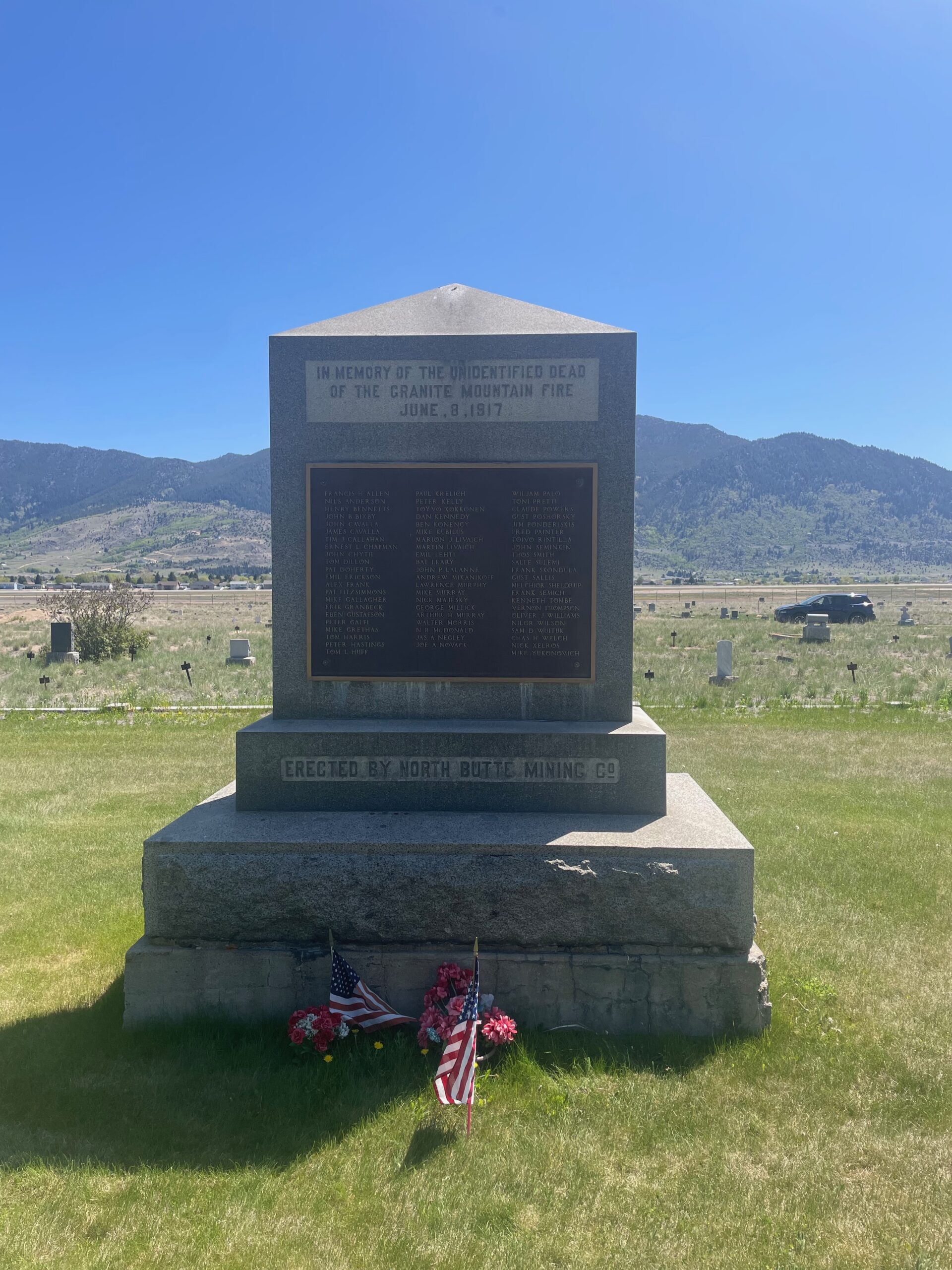 This is the mass grave of the dead from the Speculator Mine Fire of 1917, men blown to such bits and burned to such a crisp that they could not be identified and were thus buried together.