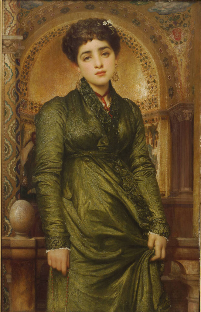 Leighton became a very standard painter of the British school–highly respected and talented, but not exactly breaking a lot of new ground with his work. You could describe much of British art in this way. Outside of Turner, there wasn’t a lot of British artists in the nation’s painting heyday of the 18th and 19th centuries as exactly transforming the art world, but capable work that reflected the upper class lifestyles of the era? For sure. He moved to London in 1860. There, he was part of the Pre-Raphaelite movement, bringing back the principles of 15th century Italian art to apply to 19th century subjects. This really fit Leighton’s world–deeply Christian, reflecting the romanticism of the time and thus rejecting the classical influences of the Enlightenment, not much interest in social issues and a lot of interest in beauty for its own sake. It’s more accurate to say that Leighton was a secondary member of this movement, being a bit younger than the founders, but he was still an important figure within it.
