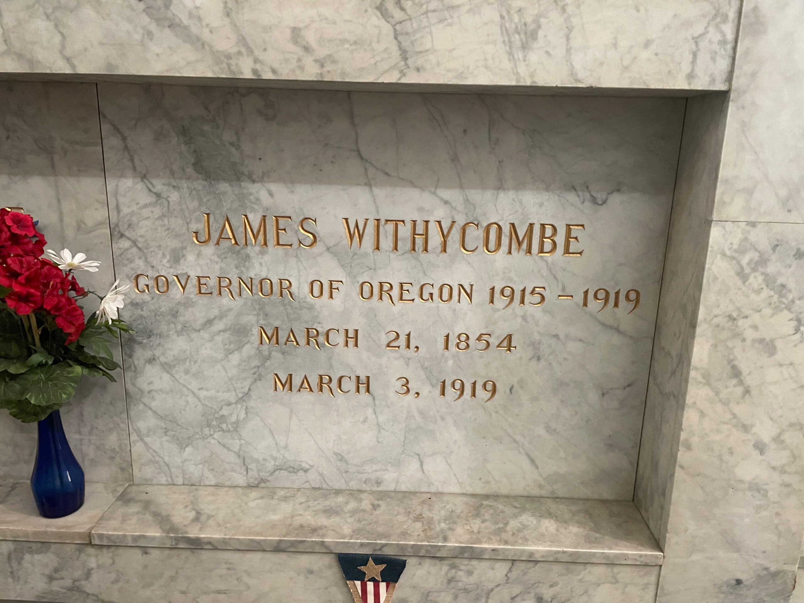 James Withycombe is buried in Mount Crest Abbey Cemetery, Salem, Oregon.