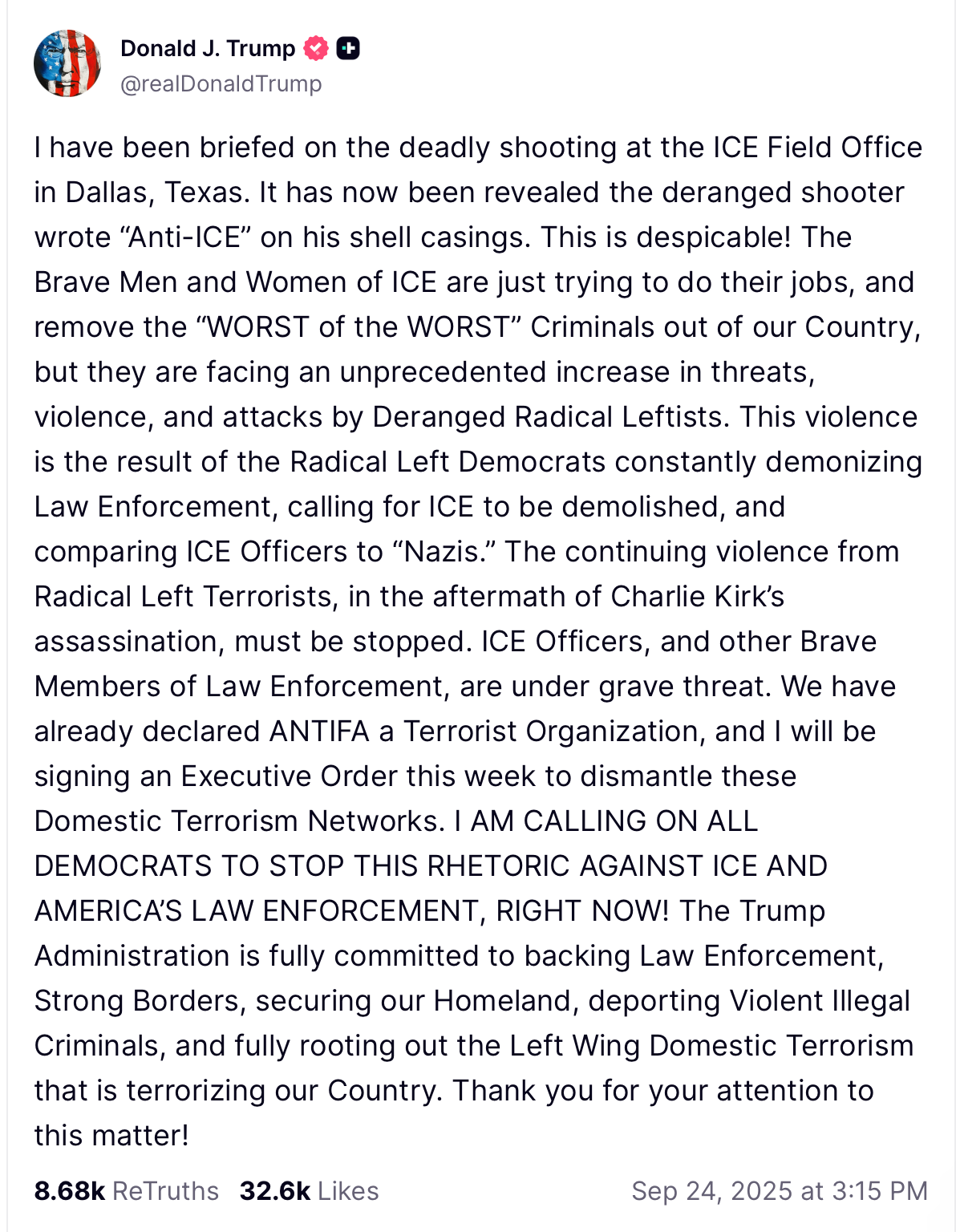 The shooting at the ICE facility in Dallas is already part of the — almost completely fictional — canon of “left wing violence” in the right wing scream machine’s propaganda archive.