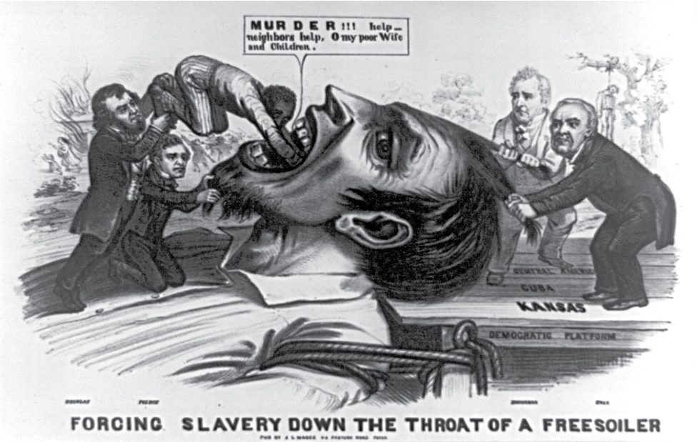 The Whigs gave in to the Compromise of 1850, which included the Fugitive Slave Act, which required people in free states to surrender escaped enslaved people, if captured, to their owners. But it was a compromise! On the other side, California entered the union as a free state, and whether several other territories were to be slave or free was left undecided. So the compromise was a trade of enslaved people’s rights for California and kicking the can down the road.