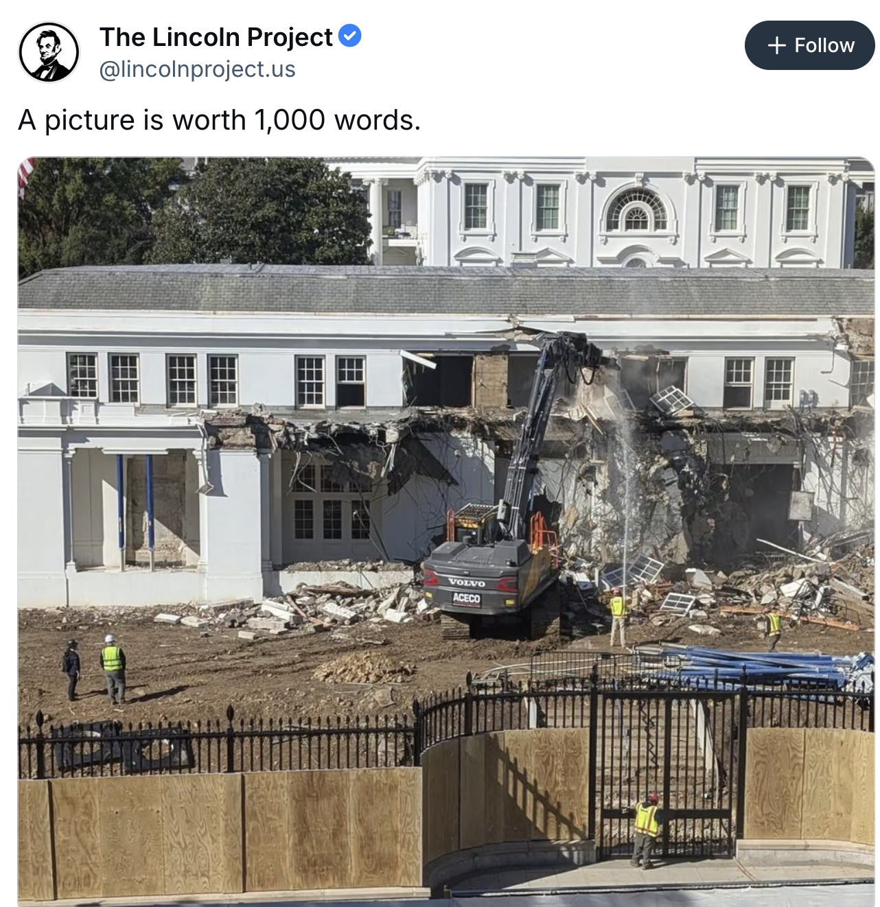 Tearing up the east wing of the people’s house to build a tacky ballroom without following any of the pertinent rules while many ordinary workers aren’t getting paid…it’s really on the nose.