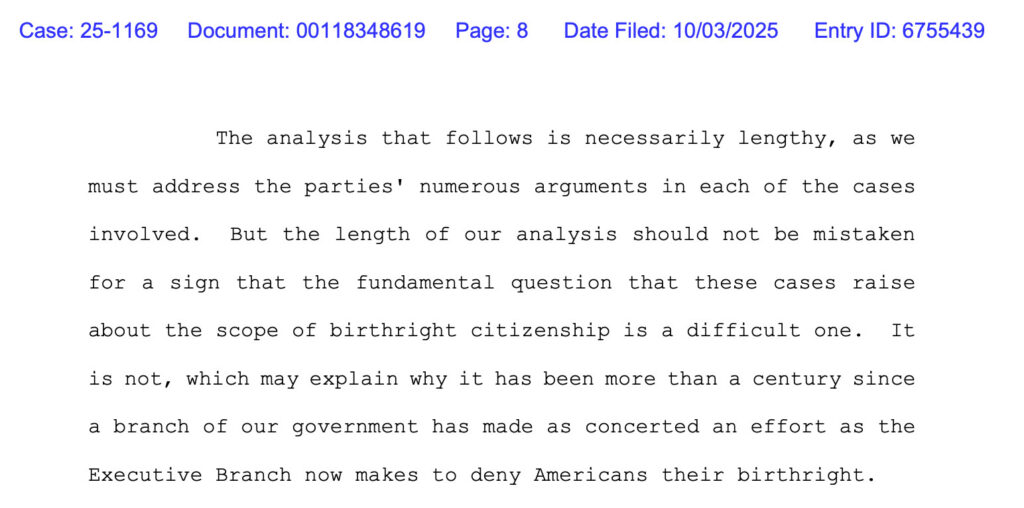 BREAKING: The First Circuit rejects Trump's executive order seeking to end birthright citizenship. In the New Jersey-led multistate case, the appeals court, in a 100-page ruling, keeps the nationwide scope of the injunction blocking the EO in place. storage.courtlistener.com/recap/gov.us…