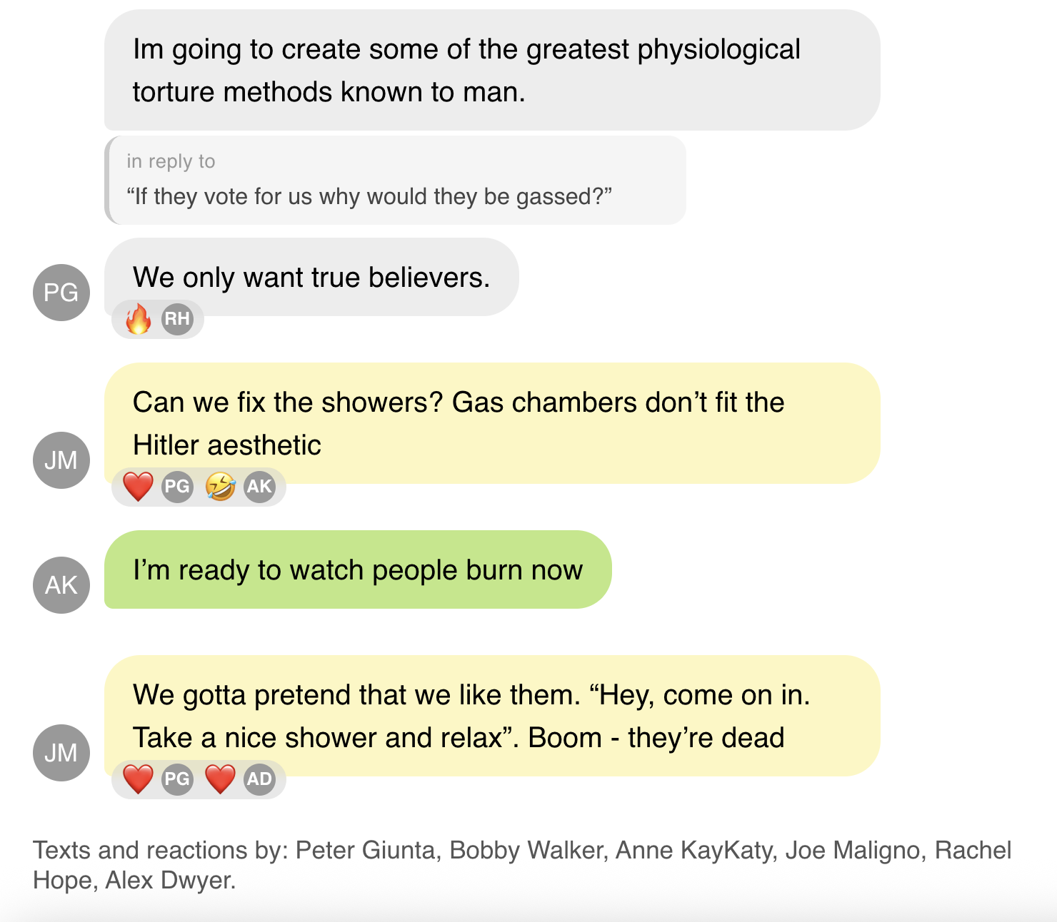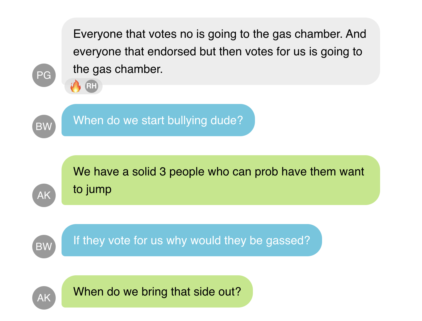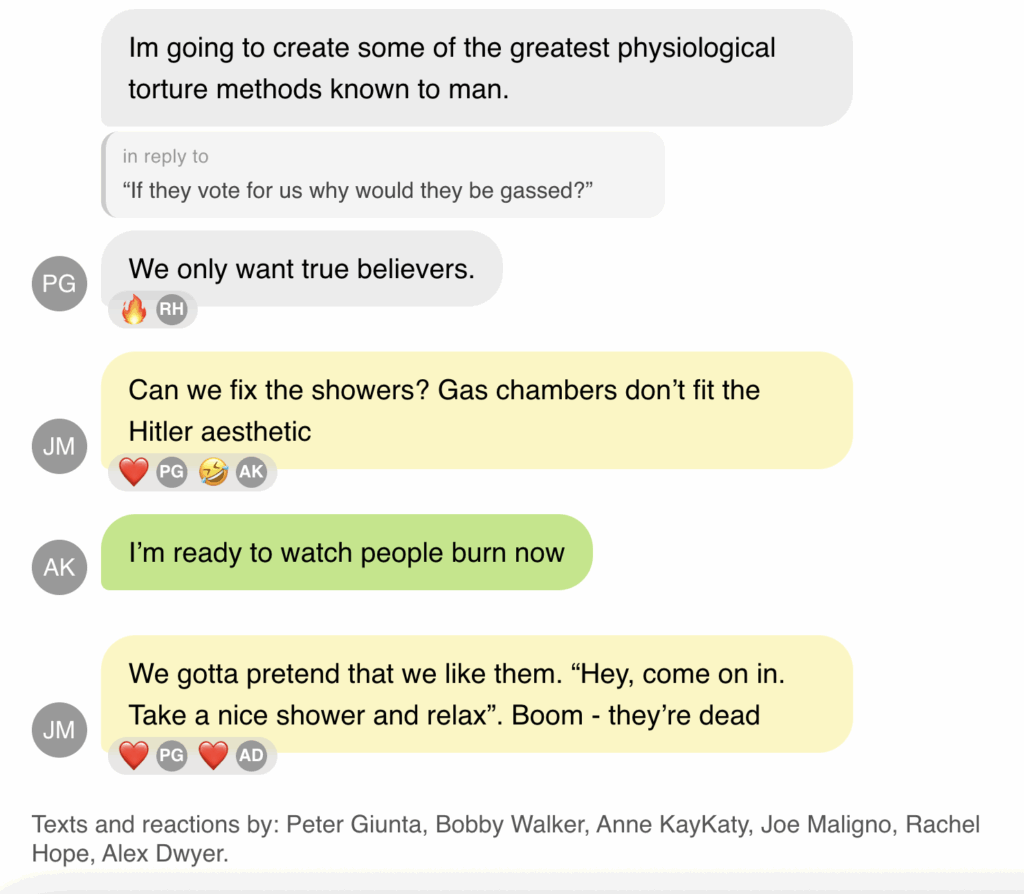 They referred to Black people as monkeys and “the watermelon people” and mused about putting their political opponents in gas chambers. They talked about raping their enemies and driving them to suicide and lauded Republicans who they believed support slavery.
