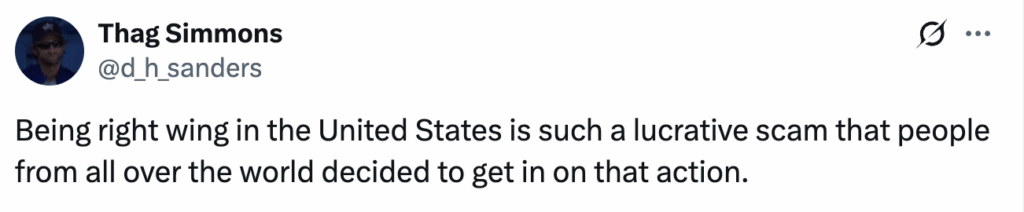 At this point X is like 1950s Vienna, a whole place made up entirely of spies, running ops against other spies, with no non-spy people. Or maybe like a 1971 Black Panthers convention where 3/4 of the attendees are conintelrpo.— Josh Marshall (@joshtpm.bsky.social) Nov 23, 2025 at 7:50 PM
