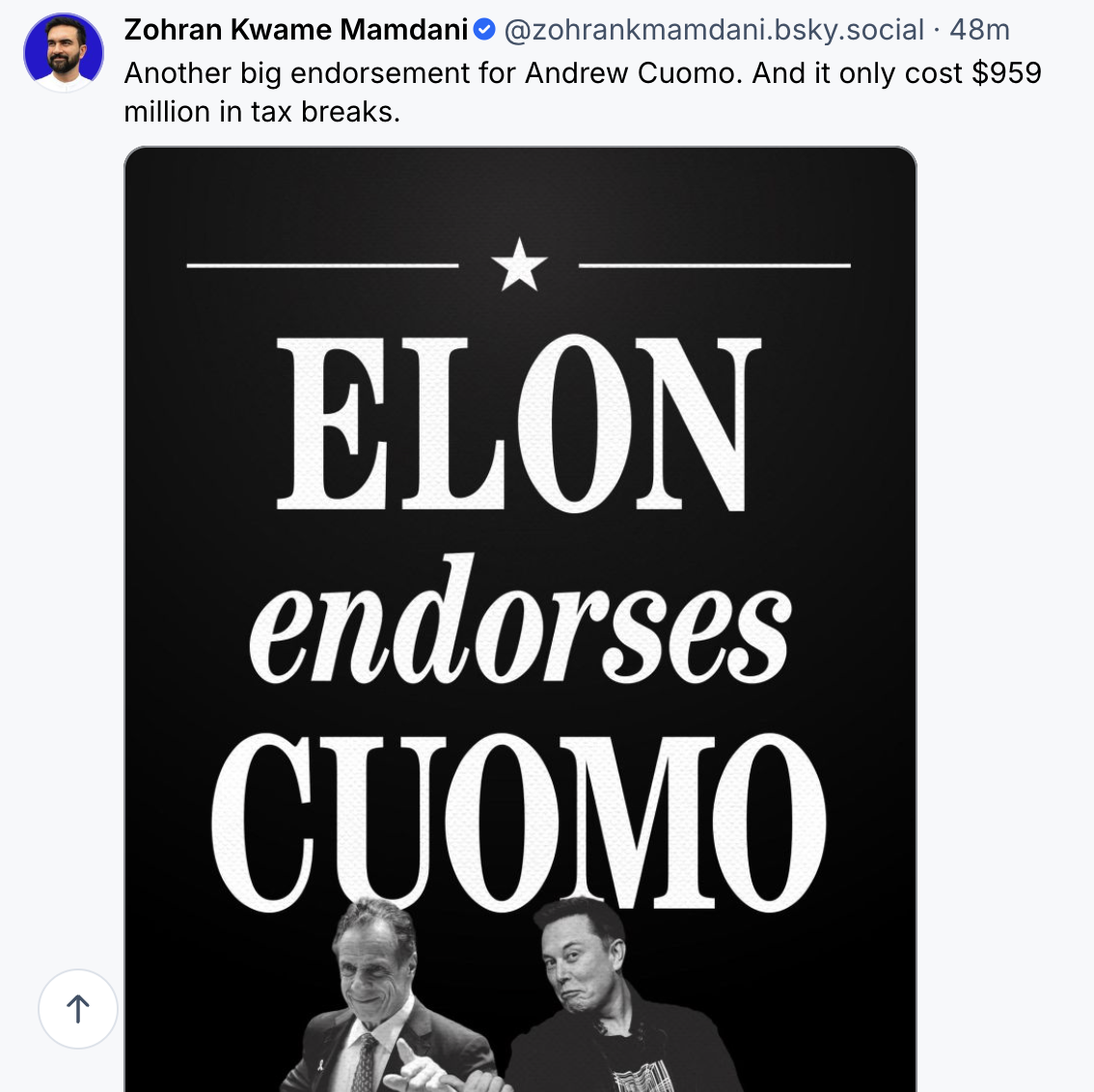 The record is clear: if you love Donald Trump and Elon Musk, you’ll sort of pretend to like Andrew Cuomo. Make sure to plan your vote accordingly.