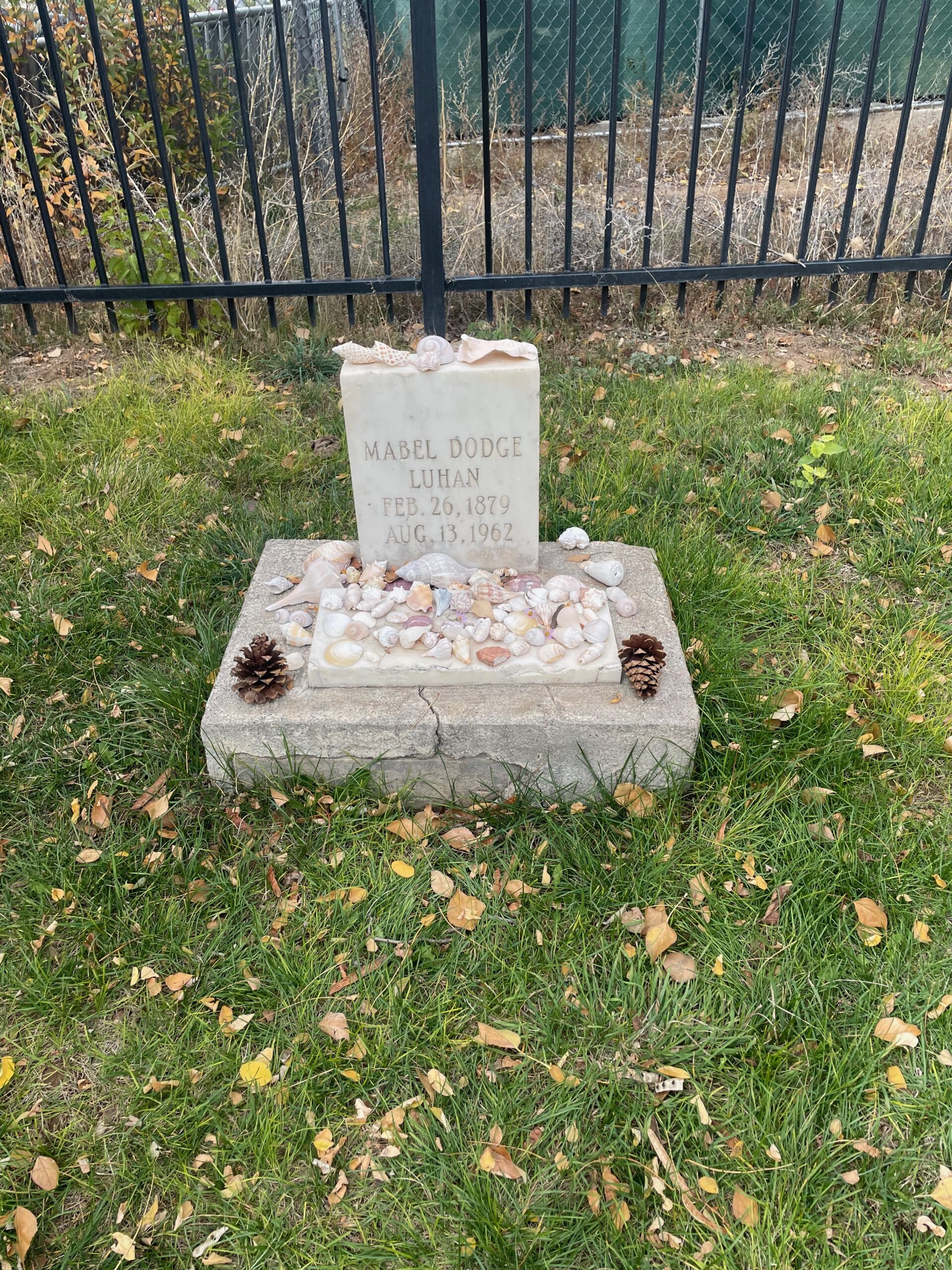 Mabel Dodge Luhan is buried in Kit Carson Memorial Cemetery, Taos, New Mexico. Interestingly, Tony Luhan is not buried with her. He’s with his own people on Taos Pueblo. If you would like this series to visit other people associated with the Taos art scene of this time, you can donate to cover the required expenses here. Arnold Ronnebeck is in Denver and Walter Van Tilburg Clark is in Virginia City, Nevada. Previous posts in this series are archived here and here.