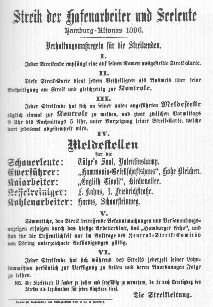 On November 21, 1896, dock workers in Hamburg, Germany went on strike. One of the major working class struggles in German history, the conservative leadership of that nation went ballistic over the sheer existence of these workers striking. The strike failed, but it was also an important moment in the development of international solidarity efforts.