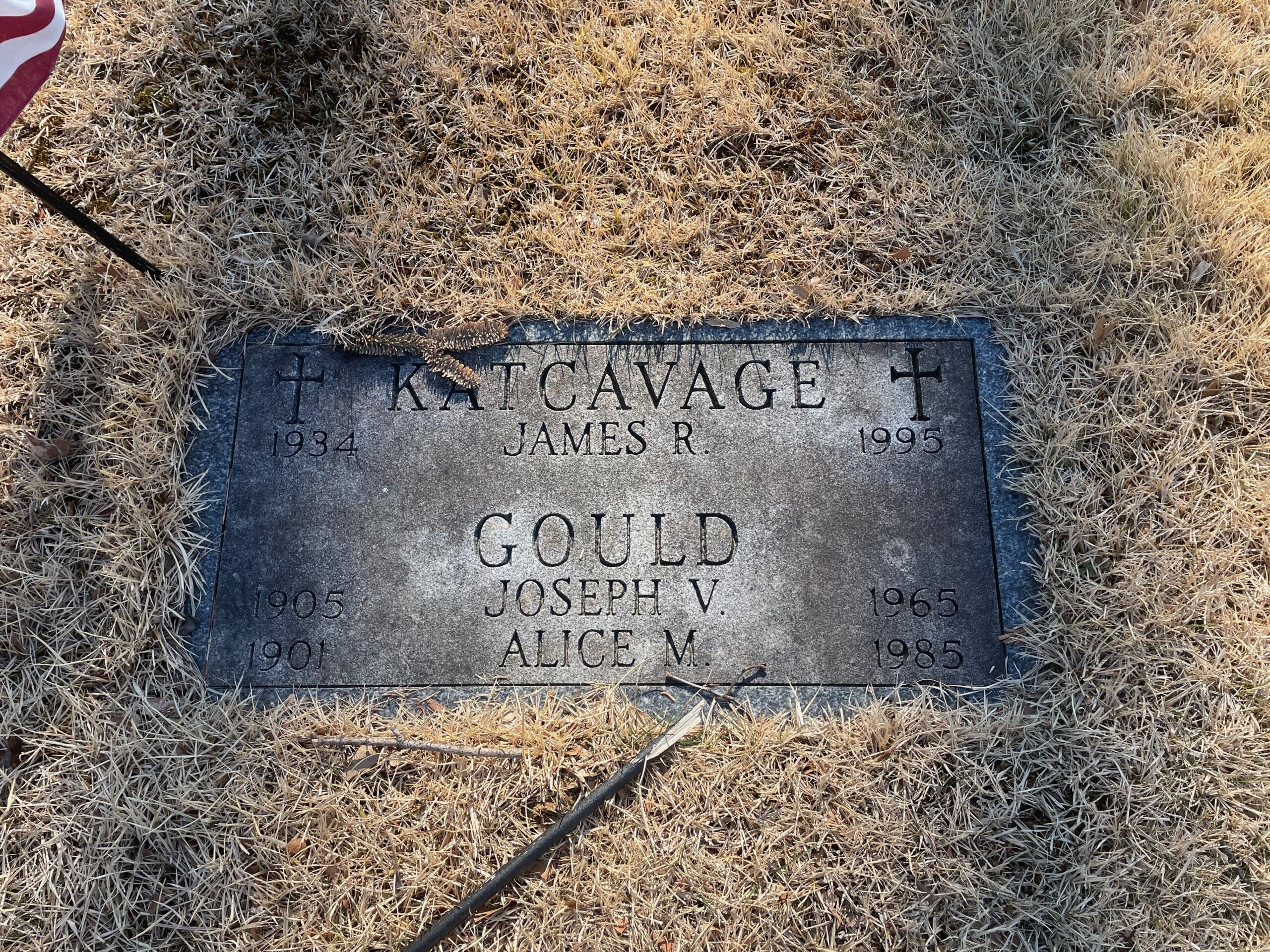 Jim Katcavage is buried in Holy Sepulchre Cemetery, Cheltenham Township, Pennsylvania.