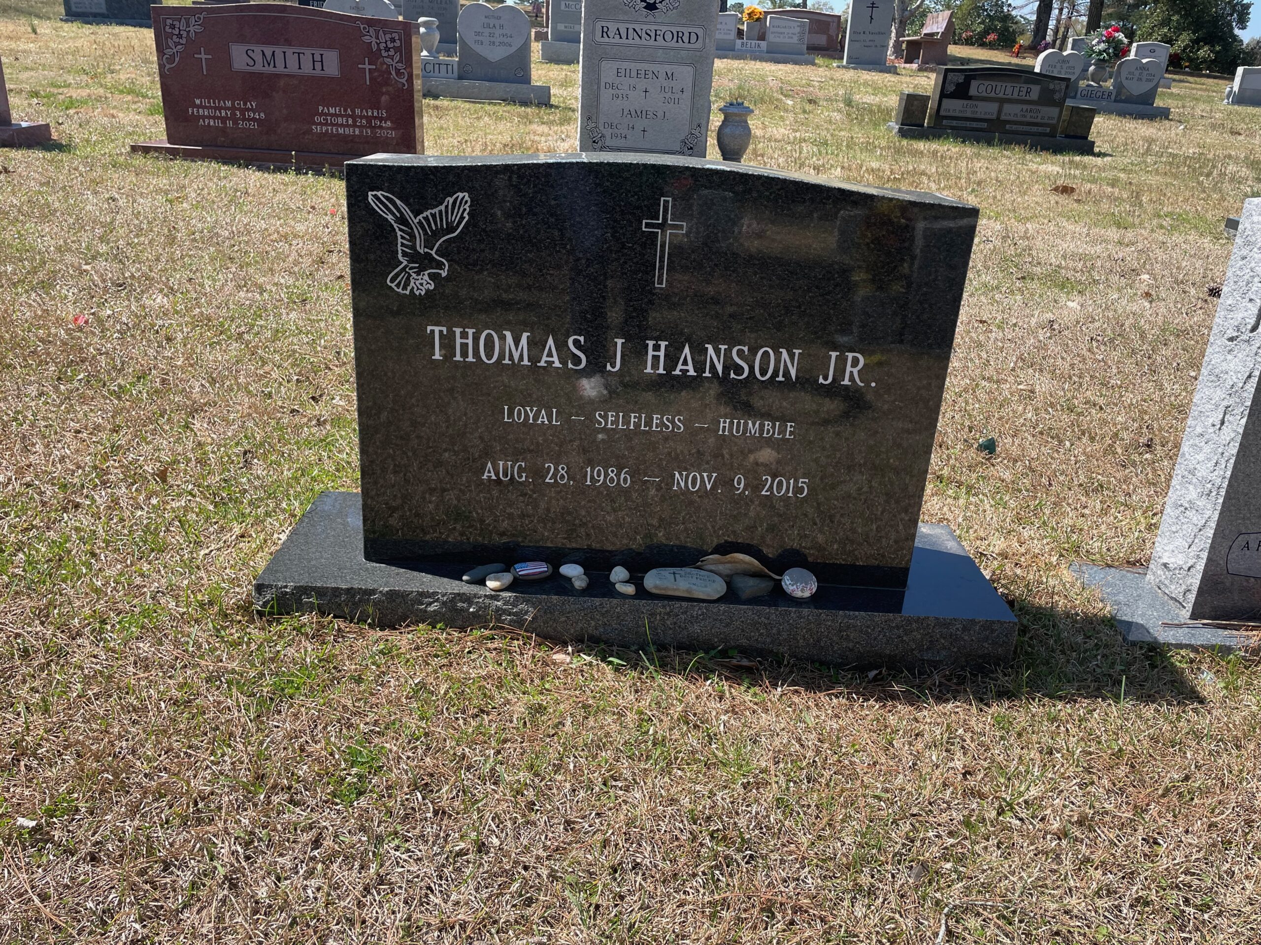 Tommy Hanson is buried in Green Lawn Cemetery, Roswell, Georgia.