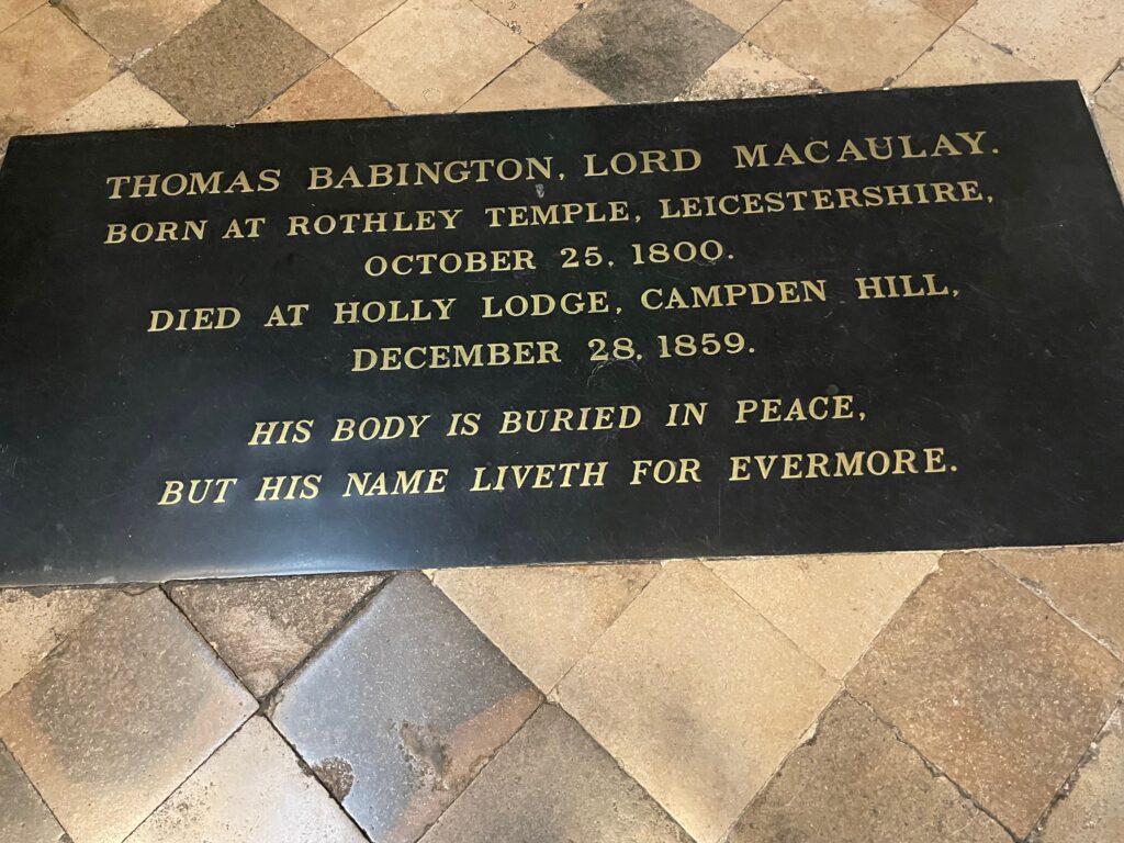 Thomas Macaulay is buried in Westminster Abbey, London, England.