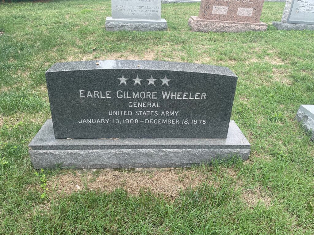 Earle Wheeler is buried on the confiscated lands of the traitor Lee, Arlington National Cemetery, Arlington, Virginia.