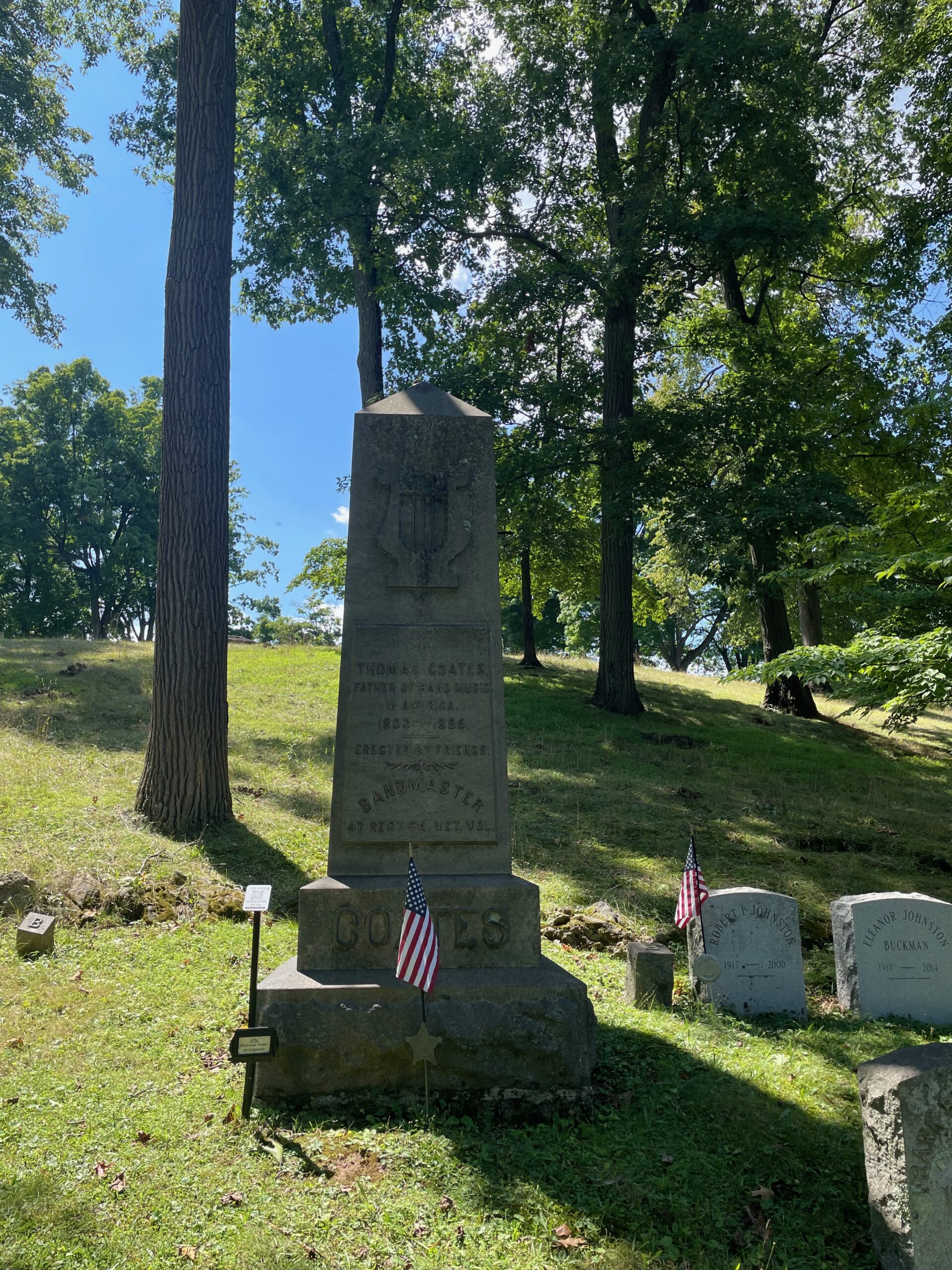 Thomas Coates is buried in Easton Cemetery, Easton, Pennsylvania. I did not go to this cemetery to visit him per se, but if you are going to give me the so-called “father of American band music,” well, OK, that seems worth an entry, short as it may be.