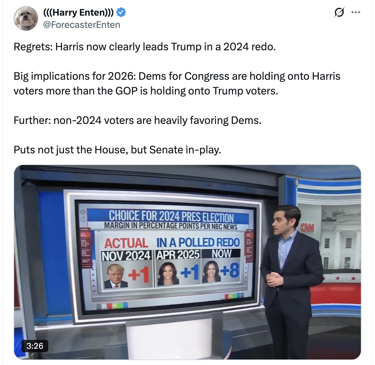 The voters who put Trump over the top basically thought they were voting for 2019 prices again plus tighter border security. (In fairness, even the rare swing voter who pays much attention to the mainstream press could well have gotten this impression too.) They are definitely not getting what they wanted and are unhappy. If the election were re-held today Harris whatever her flaws wins easily. But RFK Jr alone will do an enormous amount of damage that can’t be undone, and there’s plenty more where that came from. It really is of imperative importance that Democrats do everything they can to take the Senate and minimize the further long-term impact of Trump 2.0 by blocking judicial appointments.