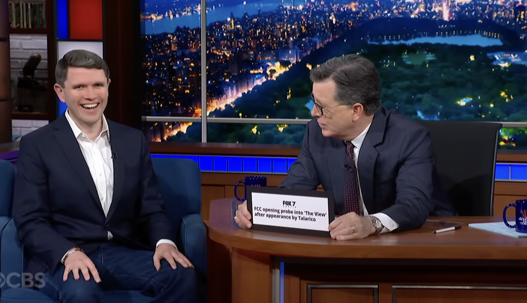 Colbert said CBS lawyers said in “no uncertain terms” that Talarico could not appear on “The Late Show with Stephen Colbert” broadcast because the network feared violating guidance from the Trump administration. Colbert nevertheless interviewed Talarico for nearly 15 minutes and posted the video on YouTube, because online material does not fall under the equal-time rule.