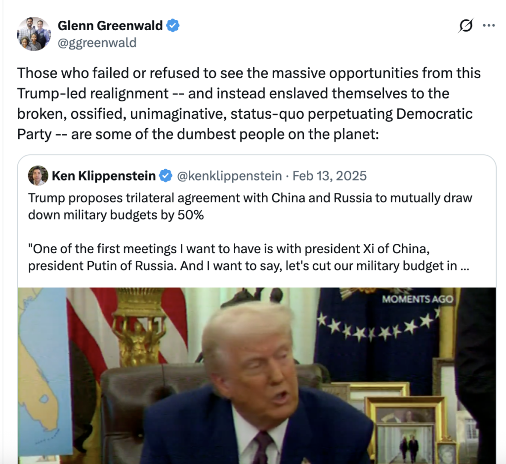 MAGA is America First!, assuming you define “America” as “defense contractors.” You know, I’m beginning to think that Donald Trump is not, in fact, going to OUTFLANK the Democrats from the left.