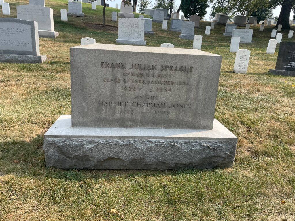 Frank Sprague is buried on the confiscated lands of the traitor Lee, Arlington National Cemetery, Arlington, Virginia.