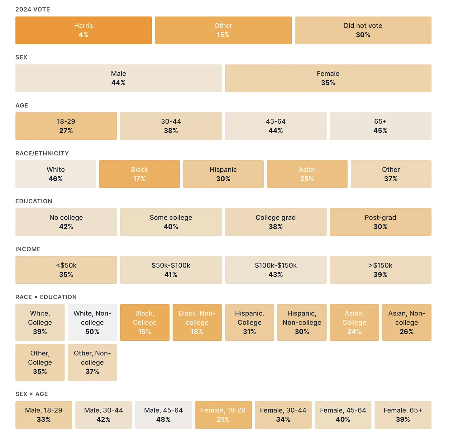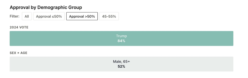 Elliott Morris assesses the the April data, and finds two groups with whom Trump is not underwater, 2024 Trump voters and men over 65: