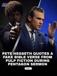 Hegseth’s reading of the “CSAR prayer,” or the “Combat Search and Rescue prayer,” more accurately reflects the monologue given by Samuel L. Jackson’s hitman character in the 1994 film Pulp Fiction than it does the real Bible verse.